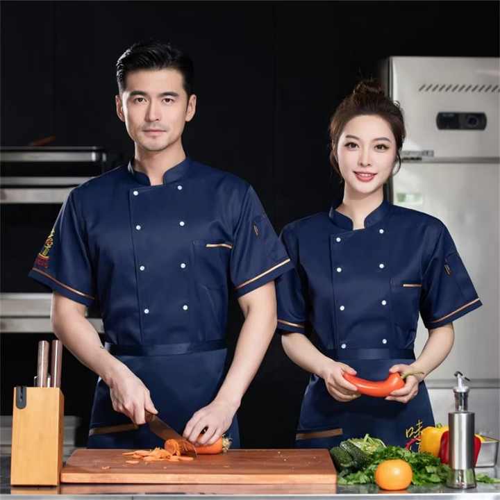 ยูนิฟอร์มเชฟแขนสั้นสำหรับโรงแรมยูนิฟอร์มพนักงานร้านอาหารบาร์เสื้อโค้ทสำหรับเชฟทุกเพศ