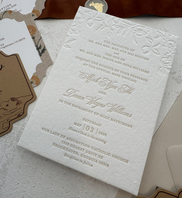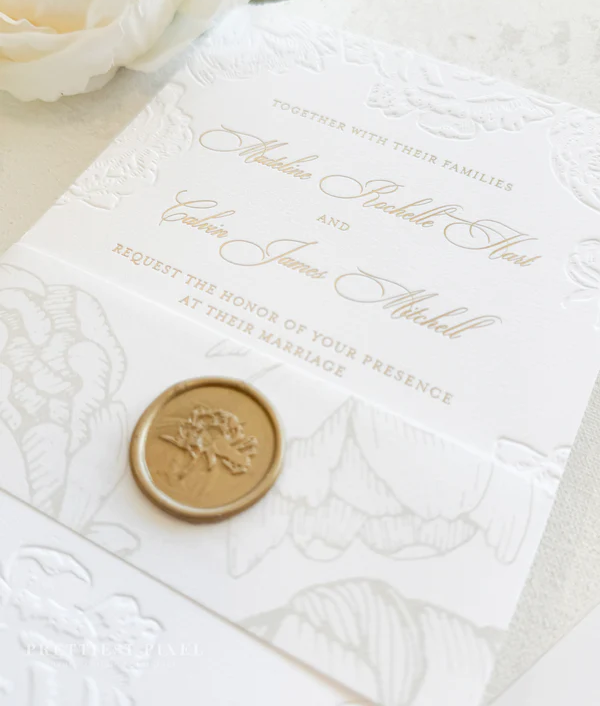 การ์ดเชิญงานแต่งงานพิมพ์นูนลายดอกไม้บนกระดาษฝ้ายขายดี พร้อมการ์ดอวยพร