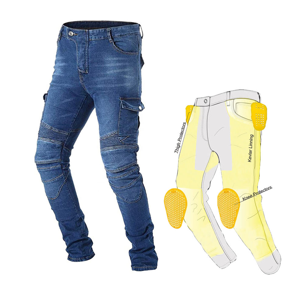 กางเกงยีนส์แบบมีรอยพับสำหรับผู้ชาย,กางเกงยีนส์เคฟล่าป้องกัน CE ป้องกันยอดเยี่ยม