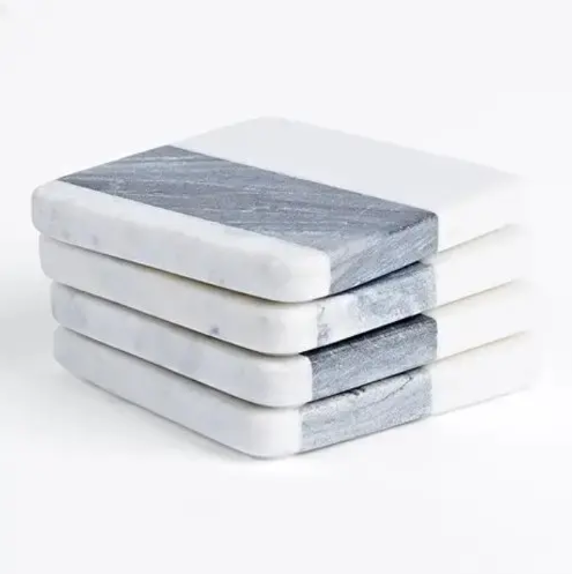 ชุดที่รองแก้วหินอ่อนสองสีดีไซน์สร้างสรรค์เสื่อและแผ่นรองตกแต่งหินสี่เหลี่ยมสำหรับงานหลากหลาย