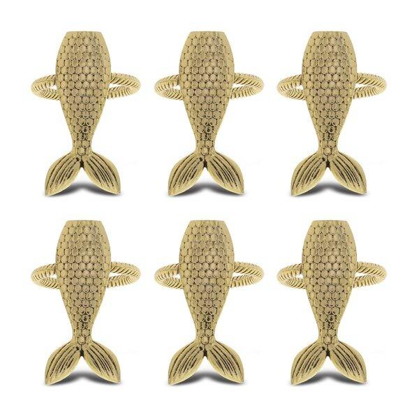 แหวนผ้าเช็ดปากนางเงือกออกแบบลายนูนรูปปลาสีทองสำหรับบ้านคาเฟ่ขายส่งสุดสร้างสรรค์
