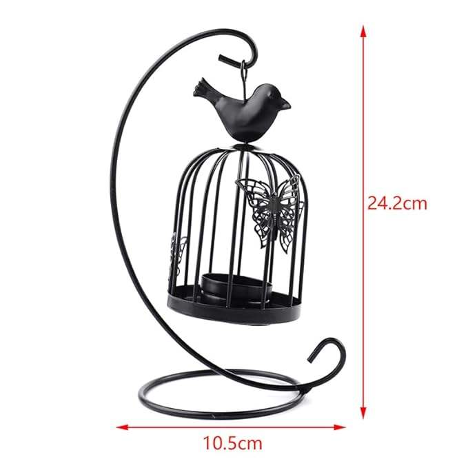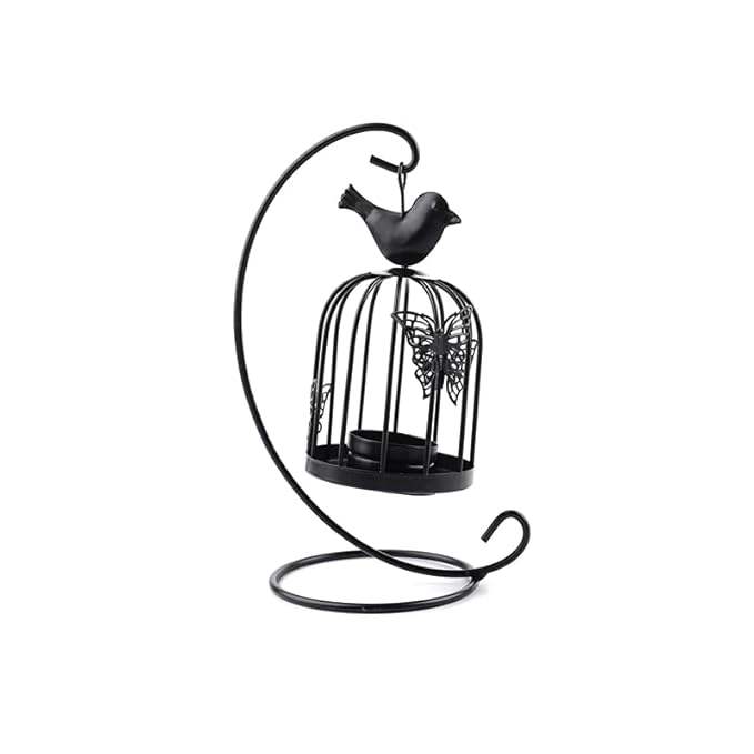 โคมไฟโลหะตกแต่งรูปนกสำหรับแขวน ใส่เทียน สีดำ สไตล์วินเทจ ตกแต่งงานแต่งงาน สร้างบรรยากาศภายในบ้าน ของขวัญเทศกาล พรีเมี่ยมดีล