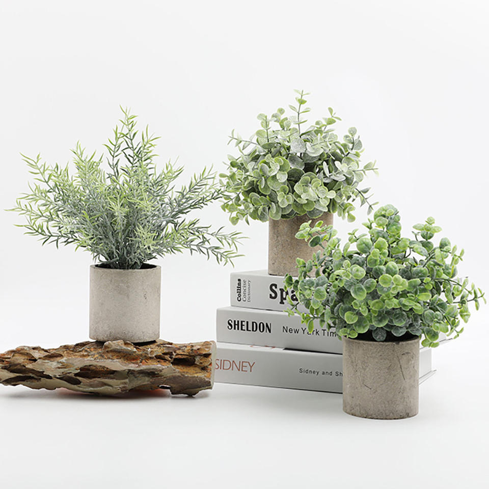 ต้นไม้สีเขียวใหม่ทำจากยูคาลิปตัสและโรสแมรี่จำลองทำจากเยื่อทรงกระบอก