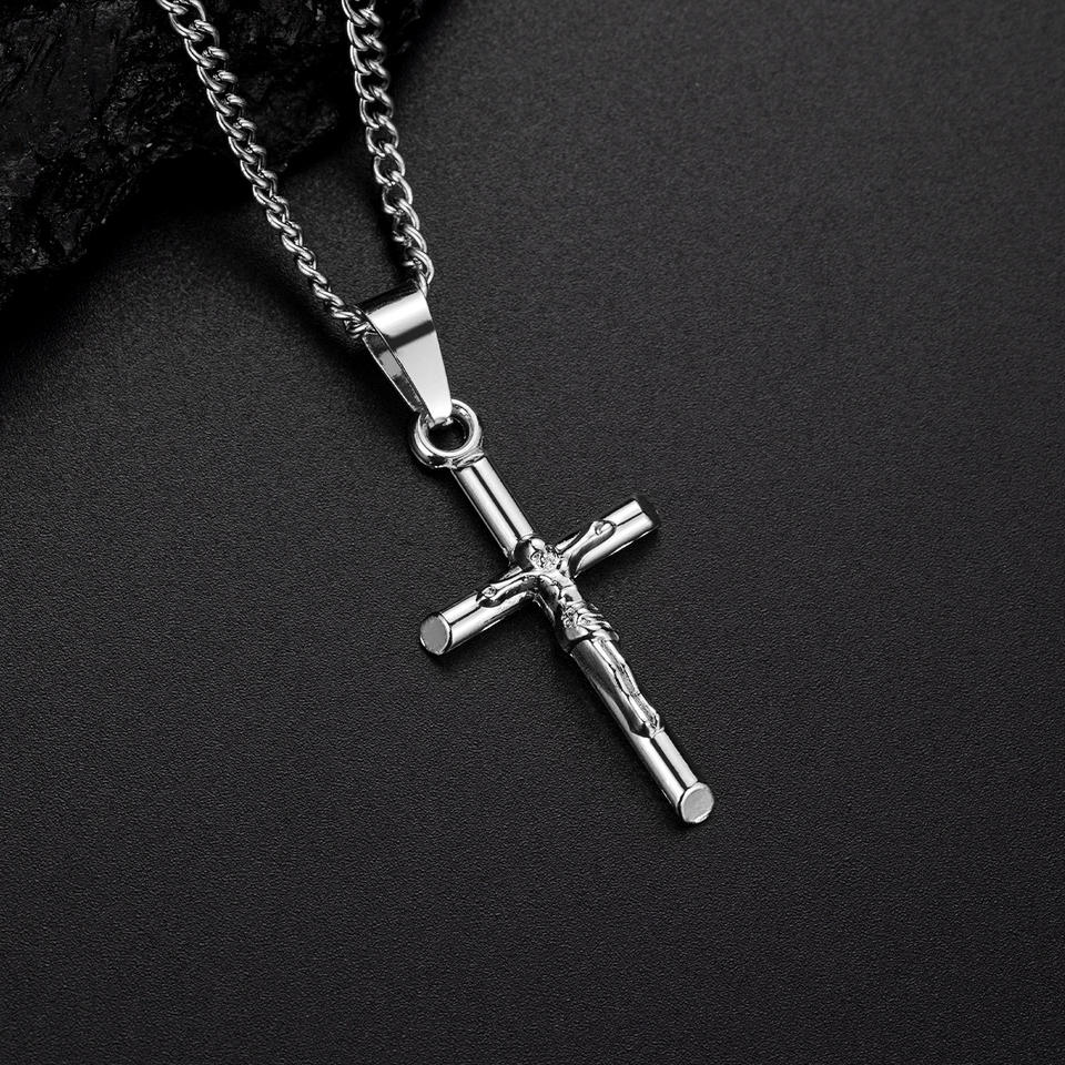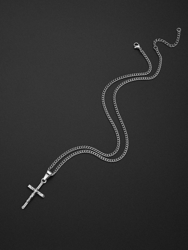 สร้อยคอไม้กางเขนสำหรับผู้ชายสร้อยคอเหล็กไทเทเนียมเครื่องประดับทันสมัยคุณภาพสูง