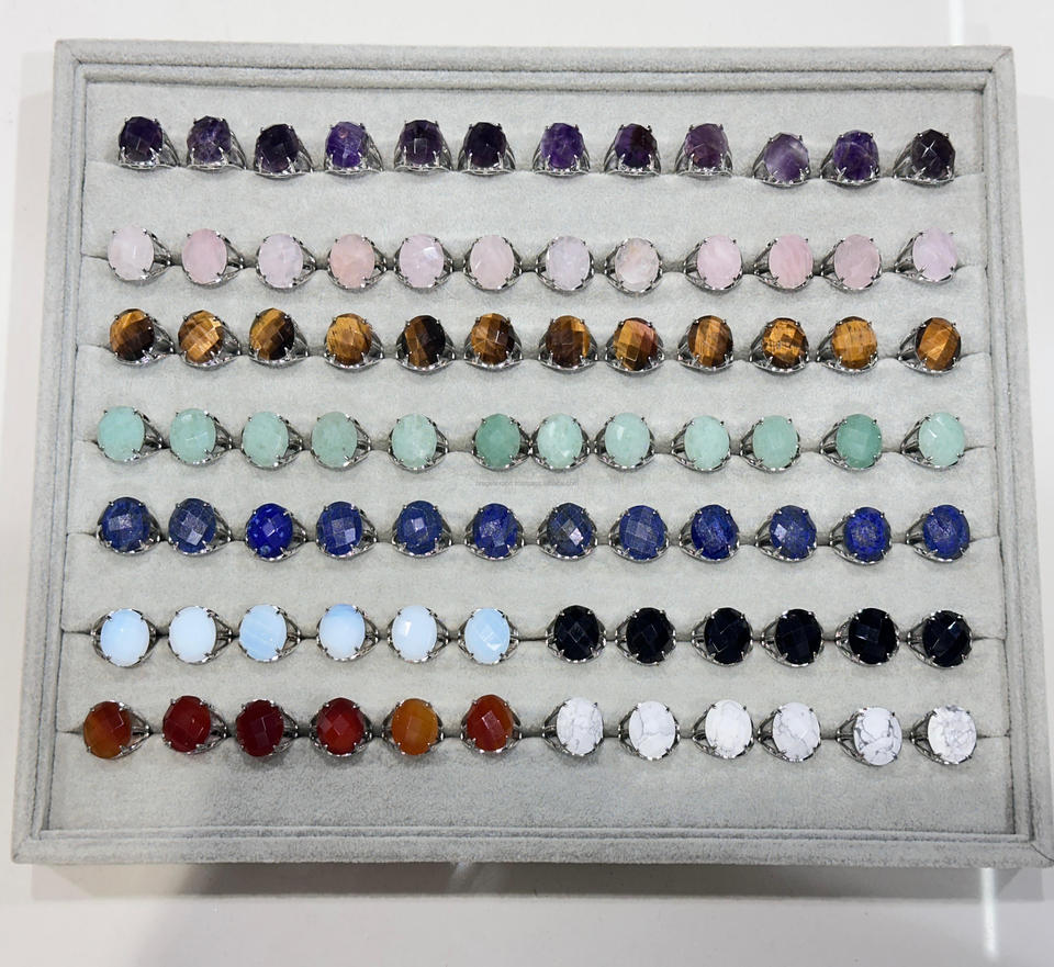 แหวนคริสตัลอัญมณีขายดี แหวนเพชรเจียระไน หินบำบัด เครื่องประดับแฟชั่น แหวนปรับขนาดได้ประดับอัญมณีหลากสี