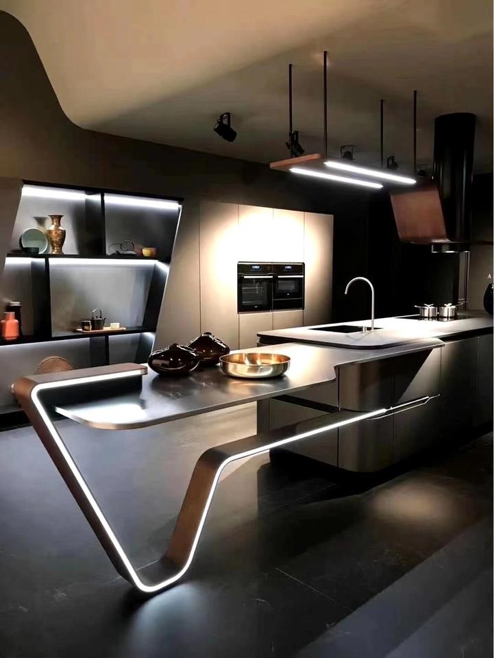 Hot Selling Custom 304 Stainless Steel Kitchen Cupboards Cabinet Volcanic Series Wall Hanging Kitchen Cabinets with Island