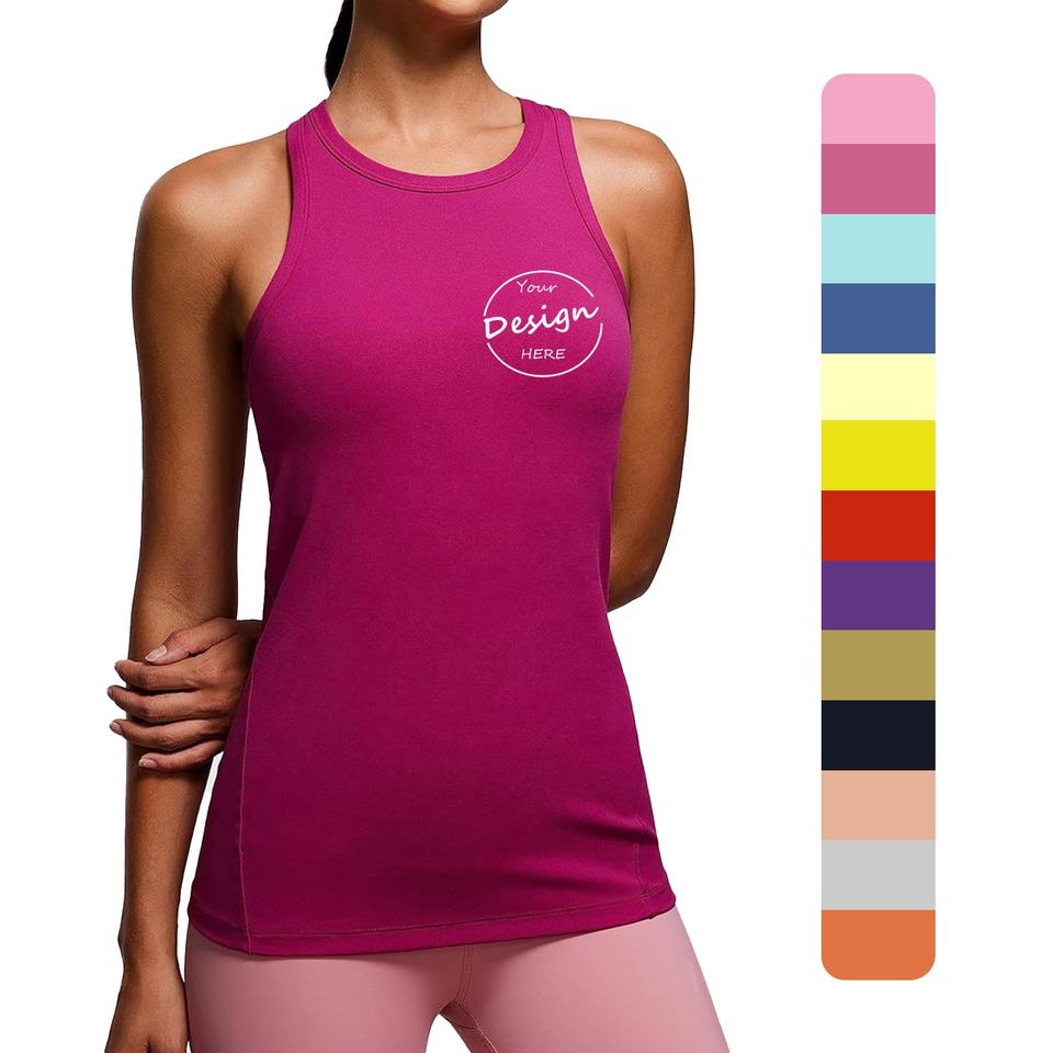 เสื้อกล้าม95% ผ้าโพลีเอสเตอร์รัดรูปเข้ารูปแบบบางยืดได้ผ้า5% ผ้าสแปนเด็กซ์สำหรับใส่เล่นโยคะฟิตเนสเชือกแขวนคอเสื้อกล้ามสำหรับนักแข่ง