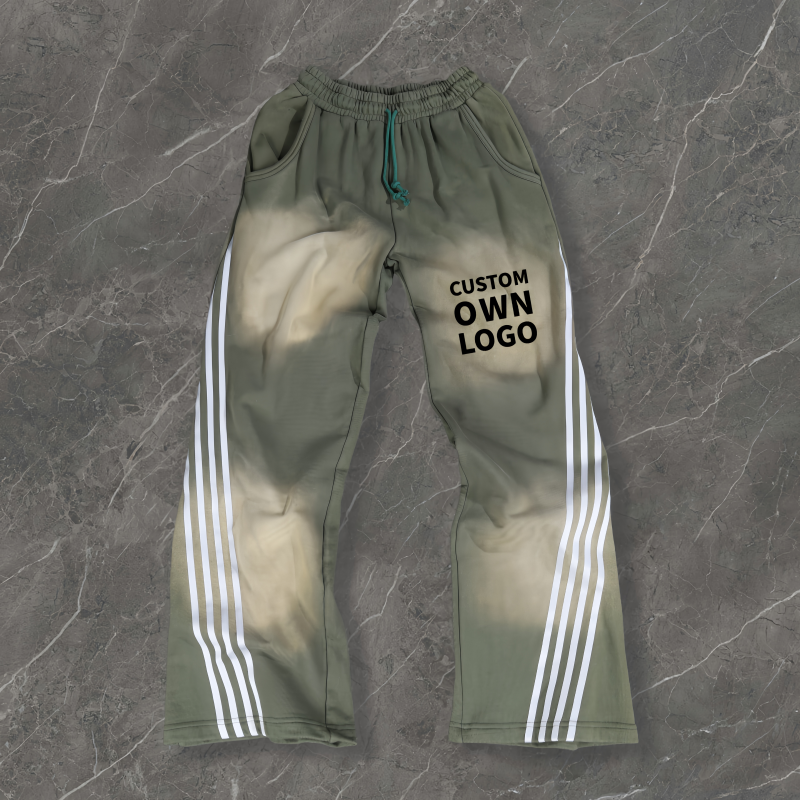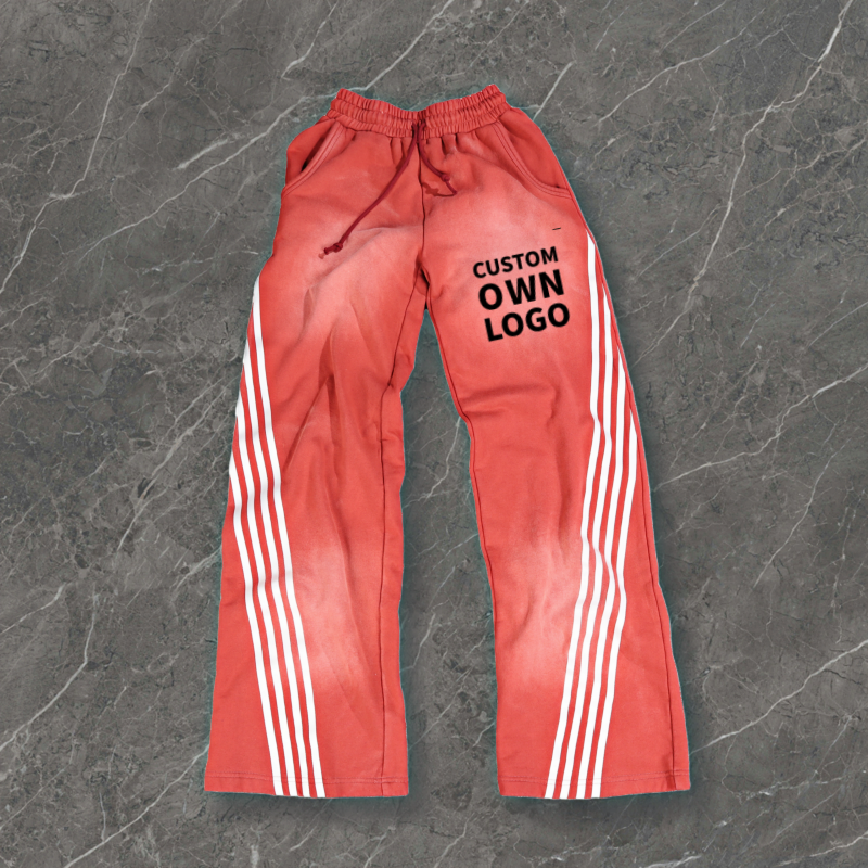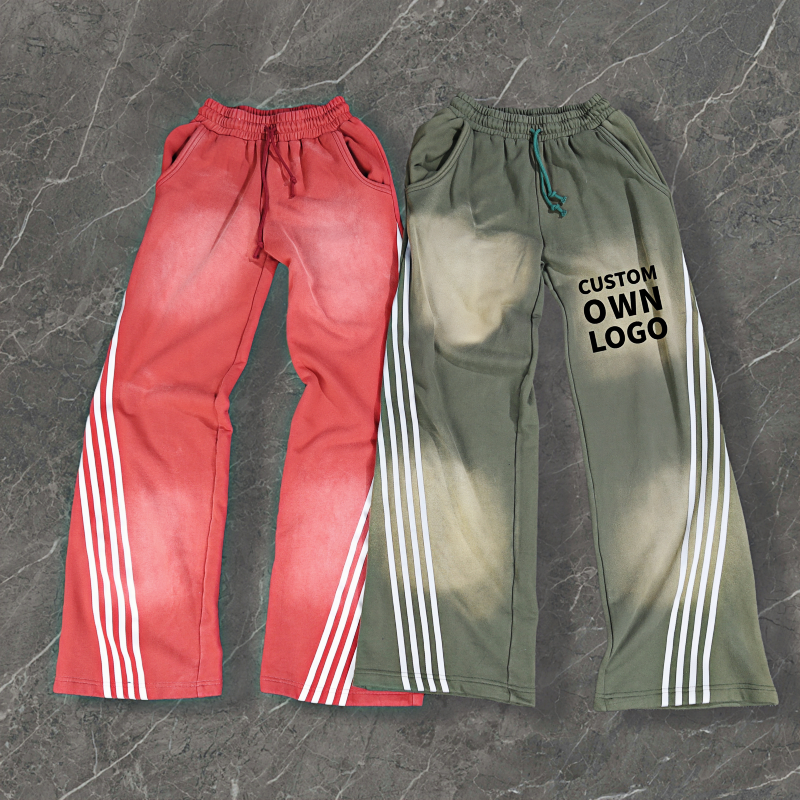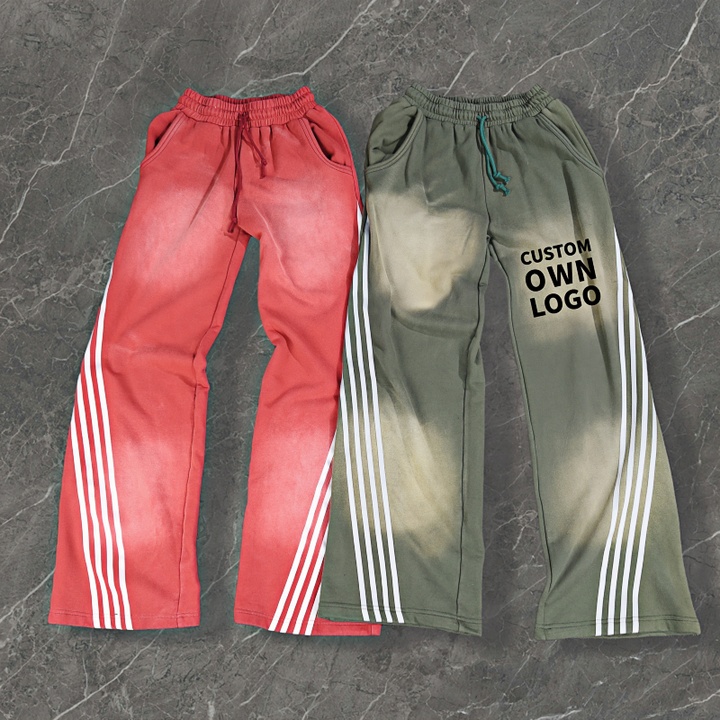 กางเกงขายาวผ้าฝ้ายหนานุ่มคุณภาพสูง ลายปักข้าง แต่งย้อมสีแบบแอซิดวอช สไตล์เท่ๆ สำหรับผู้ชาย กำลังฮิต