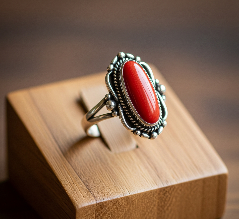 แหวนแต่งงานประดับพลอยปะการังแดงธรรมชาติ ชุบโรเดียม งานสั่งทำ ขายดี กำลังเป็นที่นิยม เหมาะเป็นของขวัญ