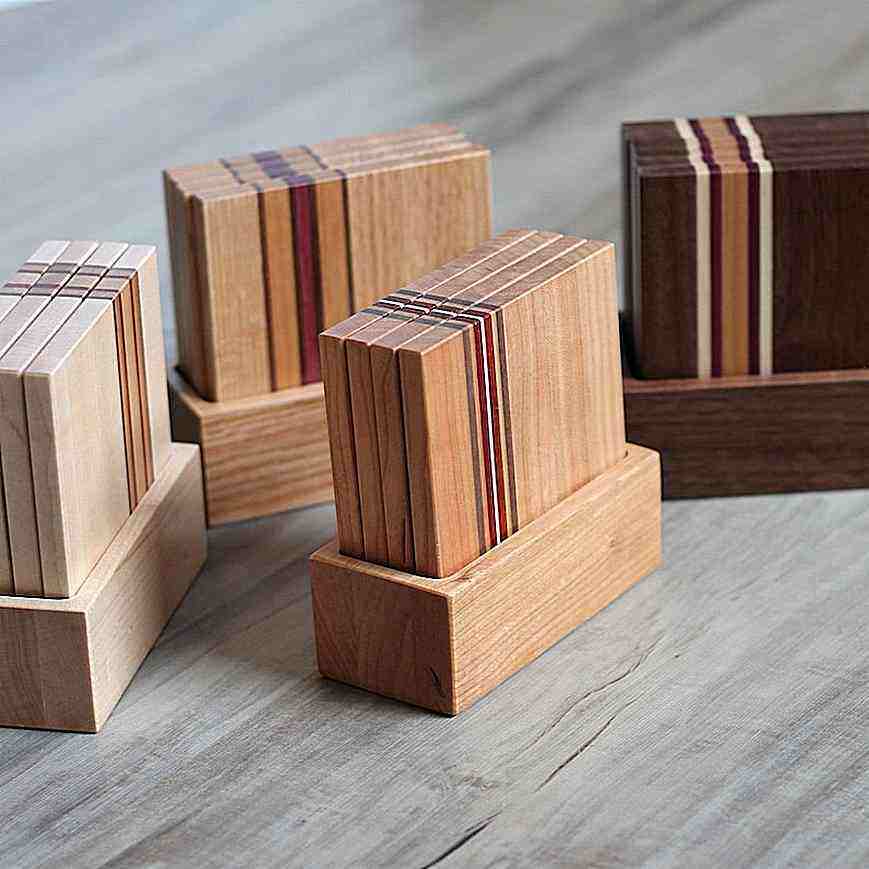 ถาดรองแก้วไม้ไผ่สั่งทำทำด้วยมือพร้อมแผ่นรองจานและแผ่นรองไม้วอลนัท