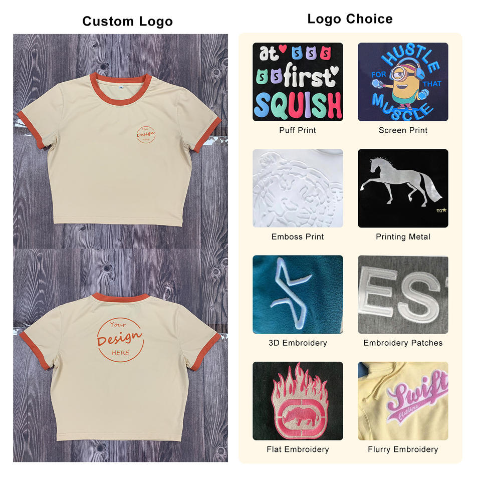 เสื้อยืดผ้าฝ้าย GSM 180น้ำหนักเบาสำหรับผู้หญิงเสื้อยืดเด็กทรงพอดีตัวปกติมีแถบสีกำหนดเองได้