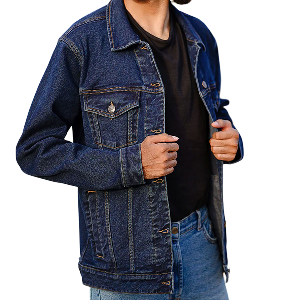 แจ็คเก็ตยีนส์ผู้ชายแบบกำหนดเองขายดี โลโก้ด้านหน้า สไตล์ลำลอง ระบายอากาศได้ดี คุณภาพสูง