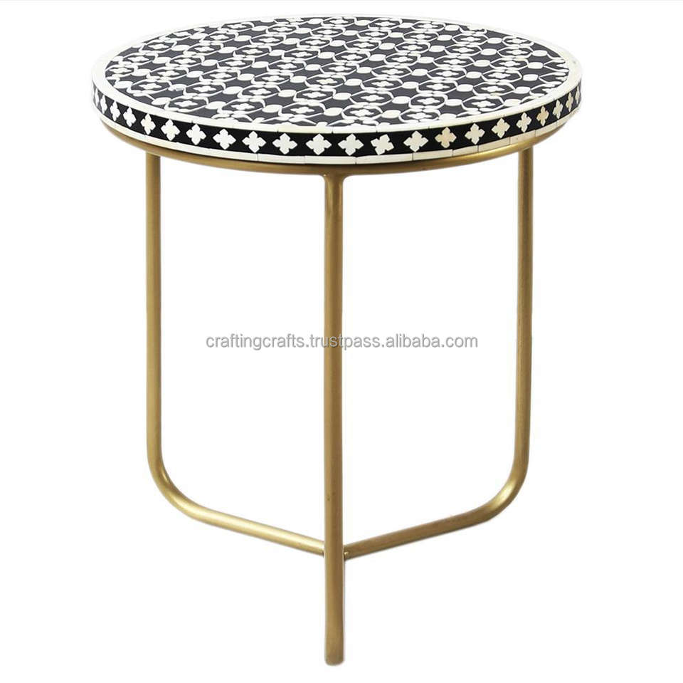 โต๊ะตกแต่งทำมือทรงสตูลสไตล์โบราณลายเปลือกหอยและกระดูกสีตามสั่ง วัสดุไม้สน MDF ขาทองเหลือง ขายดี