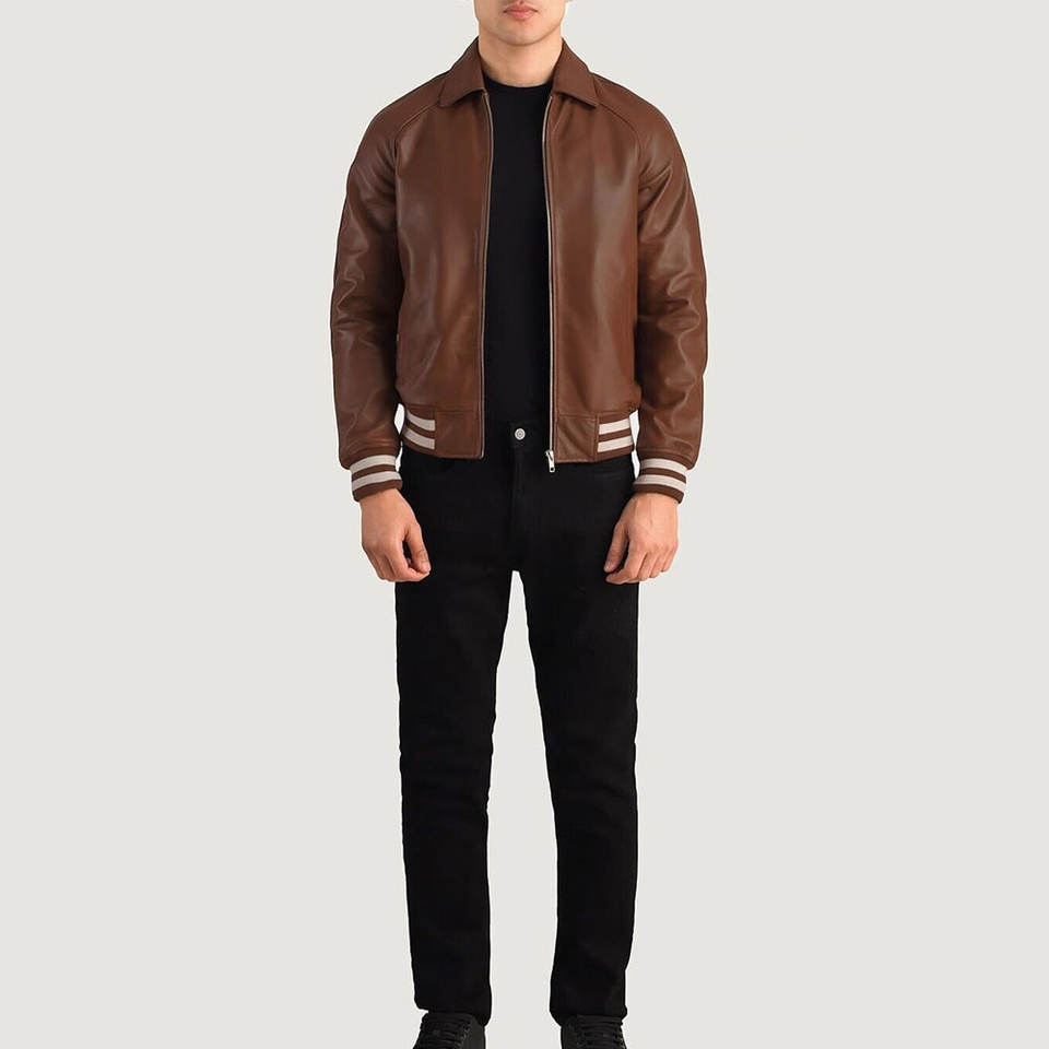 แจ็คเก็ตหนังวาร์ซิตี้สไตล์เท่ห์สุดฮิต แจ็คเก็ตเบสบอลบอมเบอร์หนังวาร์ซิตี้สำหรับผู้ชาย