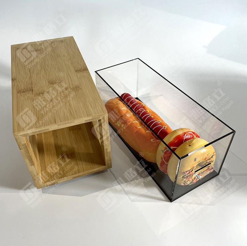 กล่องเบเกอรี่แสดงขนมปังอะคริลิคสำหรับเก็บอาหารดีไซน์ตามสั่ง