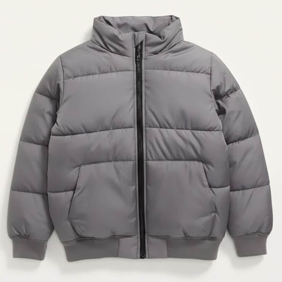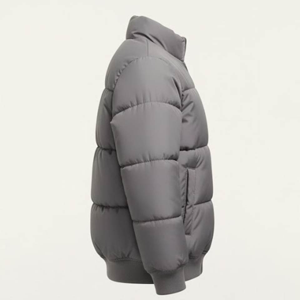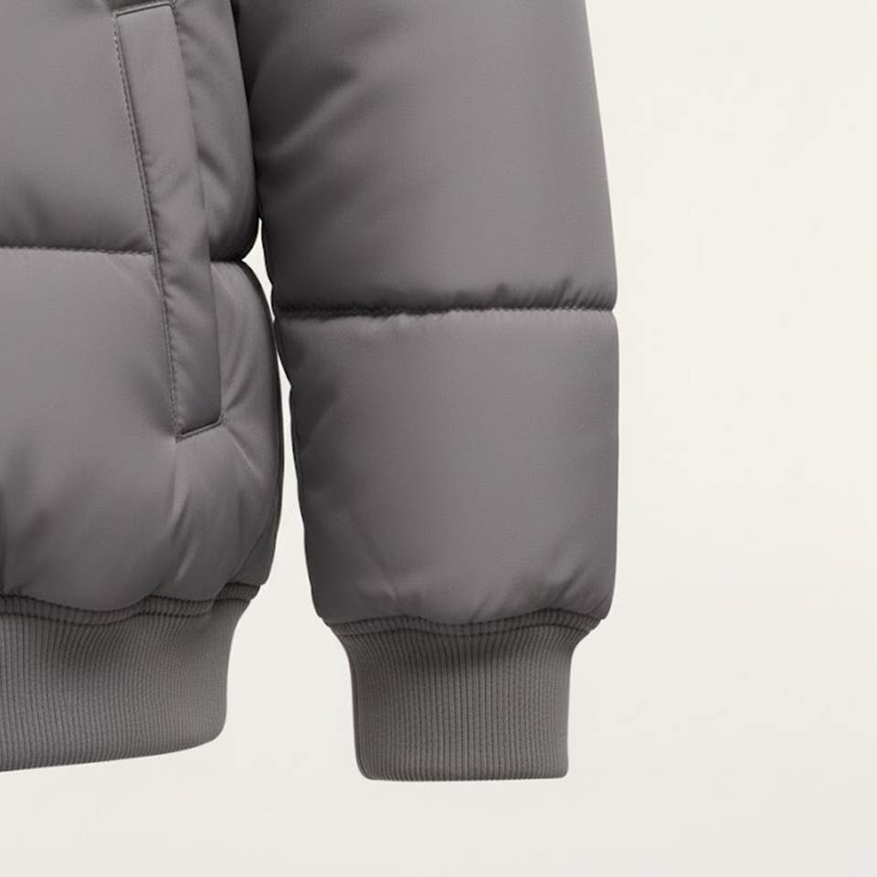 แจ็กเก็ตขนเป็ดสีเทาสำหรับผู้ชายเสื้อแจ็คเก็ตแบบพองๆมีฮู้ดเป็นมิตรกับสิ่งแวดล้อมทันสมัยดีไซน์ตามสั่ง