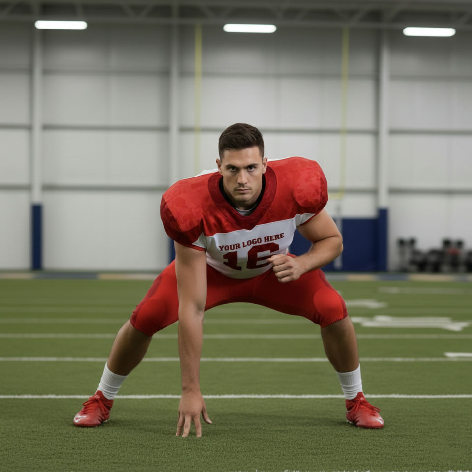 ชุดยูนิฟอร์มอเมริกันฟุตบอลแบบสั้น 2 สี ดีไซน์ตามสั่ง พร้อมชื่อทีมและหมายเลข สวมใส่สบาย ผลิตจากโพลีเอสเตอร์ 100% ขายดี