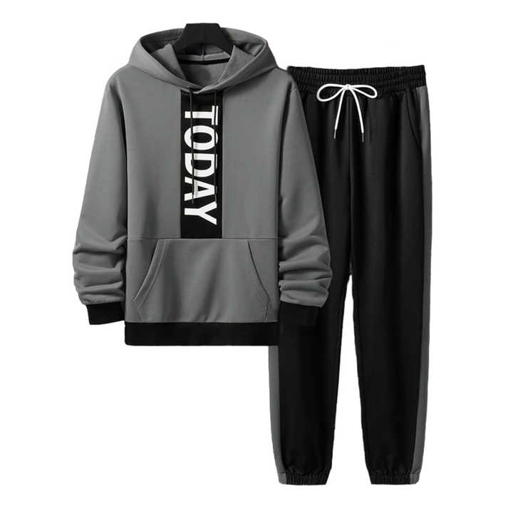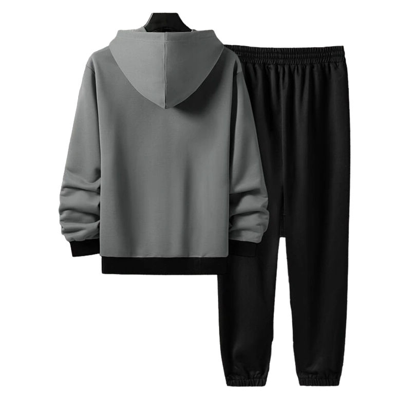 ชุดเซ็ทลำลองผู้ชายแฟชั่นสุดฮิต แจ็คเก็ตฮู้ดดี้สีบล็อก 2 ชิ้น ผ้าฝ้าย 100%