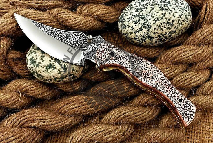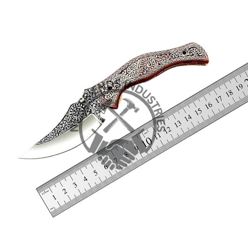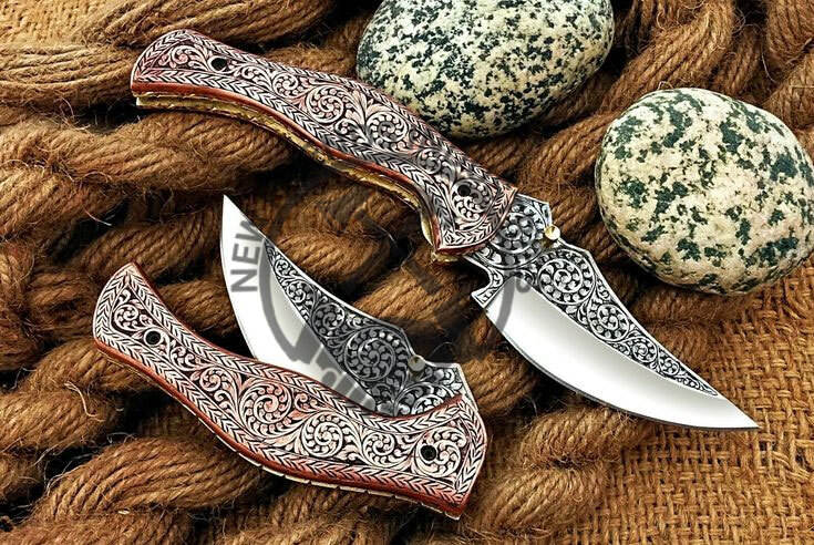 ขายดีปลอกมีดพับได้แบบกำหนดเอง D2ใบมีดแกะสลักด้วยมือปลอกหนังทองแดงสำหรับใช้งานตลอดชีวิตเกรดดีไอวาย