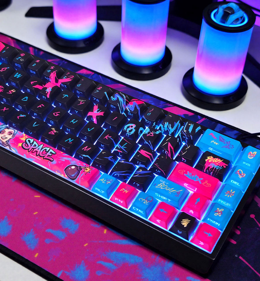 คีย์แคปแบบกำหนดเองลาย Ghost Gengar Jinx Reze Cherry รุ่นขายดี วัสดุ PBT สำหรับคีย์บอร์ดแบบ MX Mechanical พร้อมไฟแบ็คไลท์