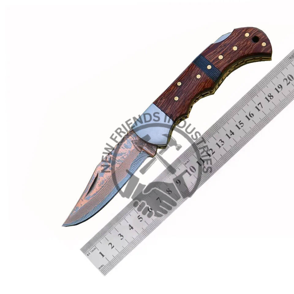 มีดพับเหล็กดามัสกัสทองแดง/มีดพก