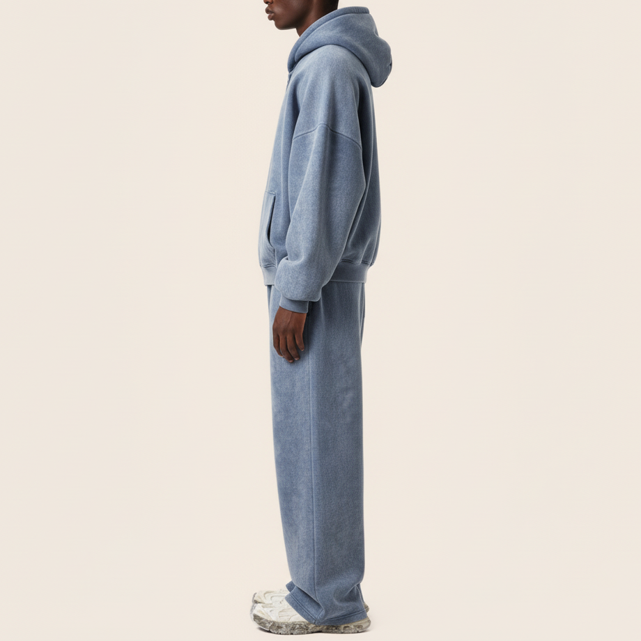 ชุดวอร์มผู้ชายแบบมีฮู้ด สไตล์วินเทจ ล้างสีแบบแอซิด ขายดี พิมพ์ลายด้วยความร้อน น้ำหนักเบา ผลิตจากโพลีเอสเตอร์ 100%