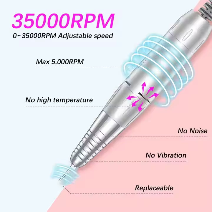สว่านเจาะเล็บไร้สายไร้แปรงถ่านชาร์จไฟได้ชุดสว่านกัดเจาะเล็บ35000รอบต่อนาทีโลโก้ตามสั่ง