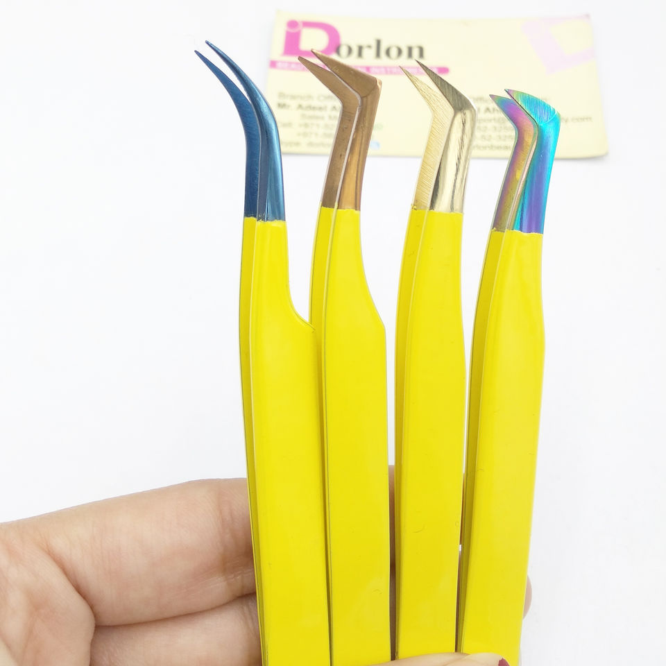 พลาสม่าปลายดัดขนตาสแตนเลสเคลือบสีปลายโค้งปรับแต่งโลโก้สีได้ป้องกันแม่เหล็ก