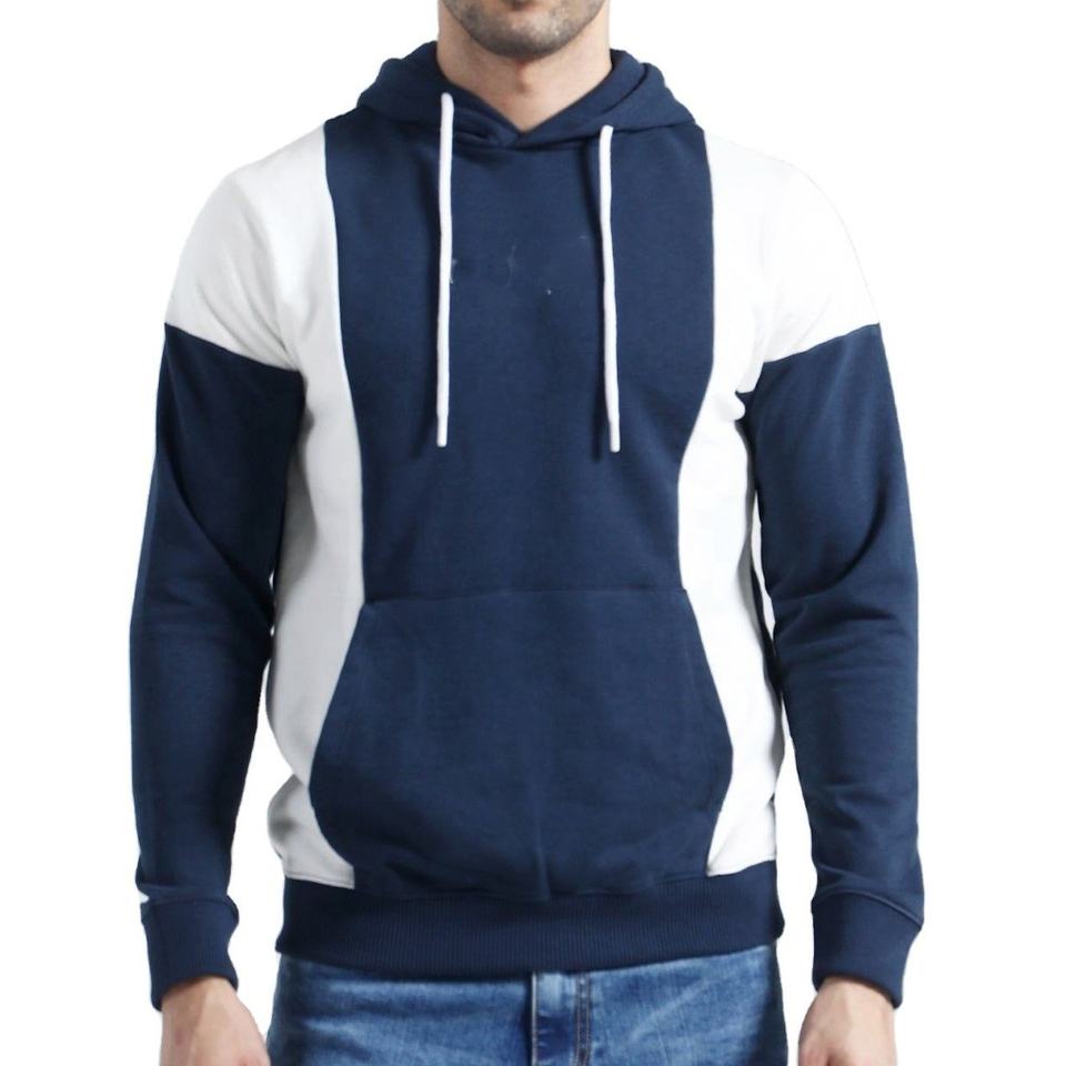 ชุดออกกำลังกายแขนยาวมีฮู้ดสำหรับผู้ชายใส่สบายสไตล์ใหม่สำหรับฤดูหนาวสีน้ำเงินและสีขาวโลโก้ออกแบบได้ตามต้องการ