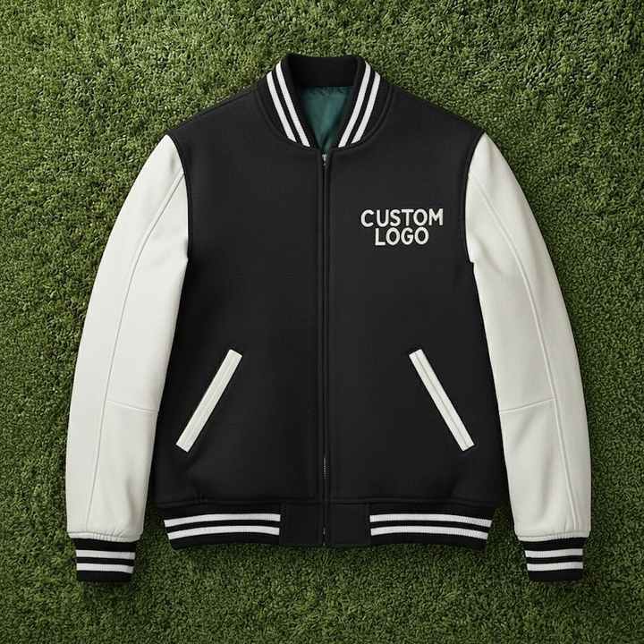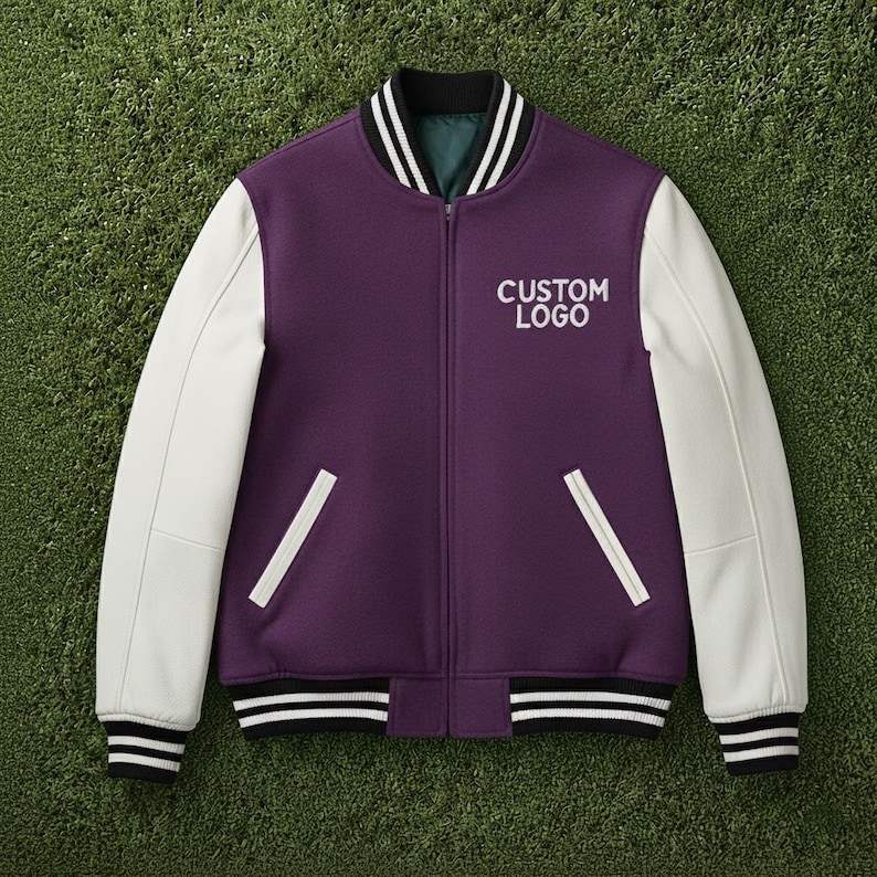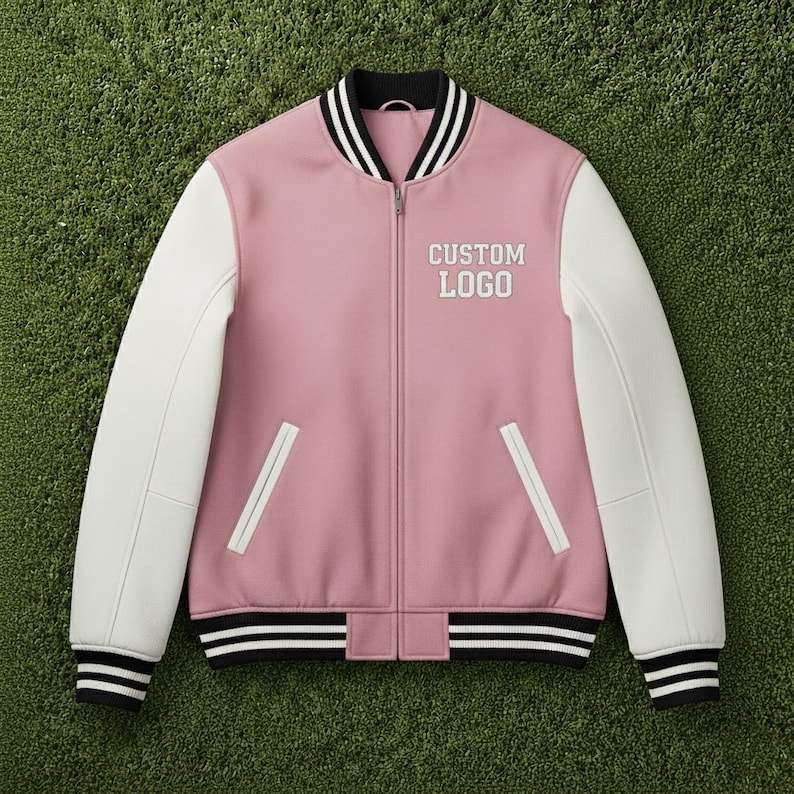 แจ็คเก็ตบอมเบอร์แบบมีโลโก้สั่งทำ ขายดี ทรงวาร์ซิตี้ ตัดเย็บแบบพับไหล่ กลับด้านได้ ระบายอากาศได้ดี สำหรับผู้หญิง