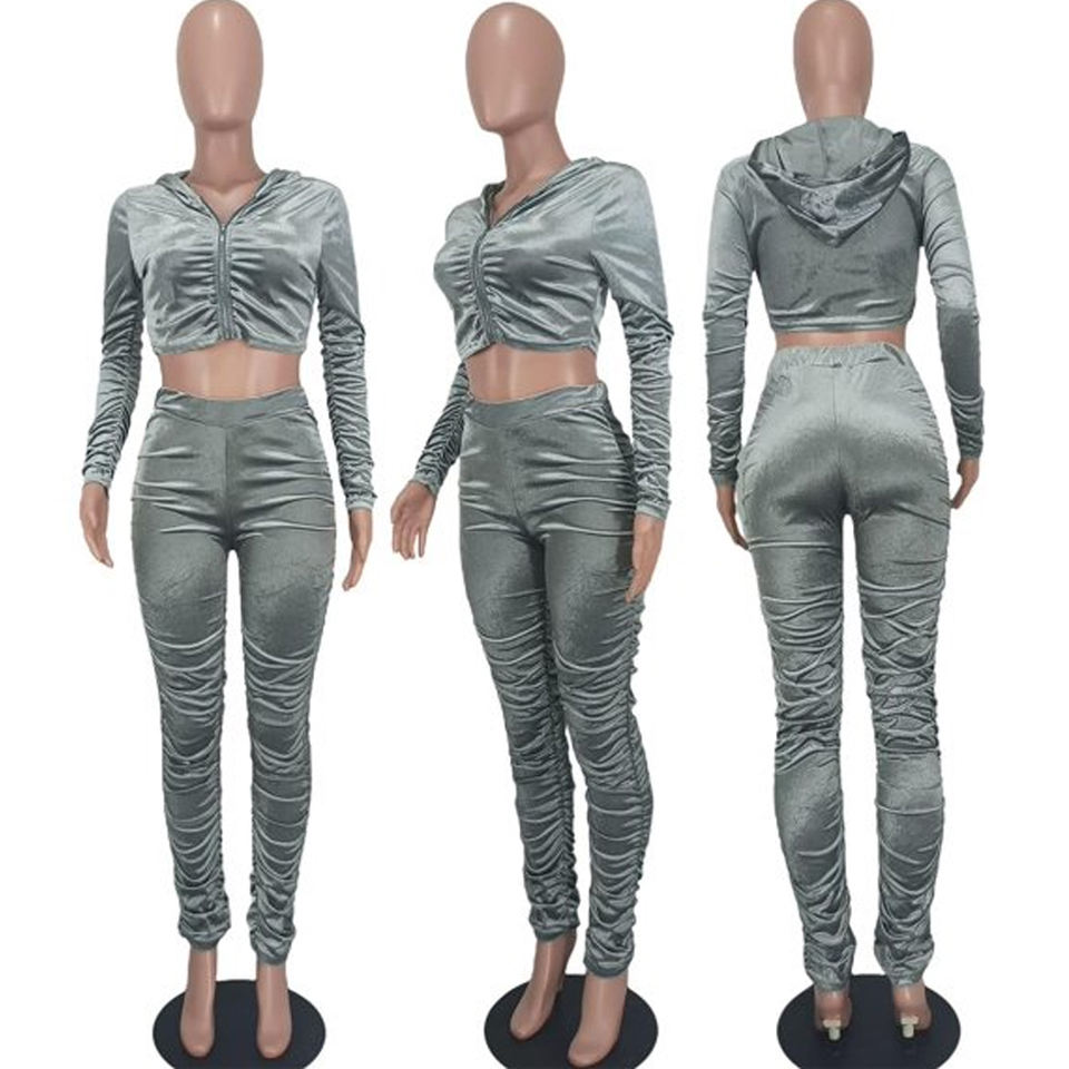 ชุดวอร์มผ้ากำมะหยี่มีฮู้ดกางเกงขากว้างกางเกงครอปเอวสูงกำหนดโลโก้ได้เองจากโรงงานโดยตรง