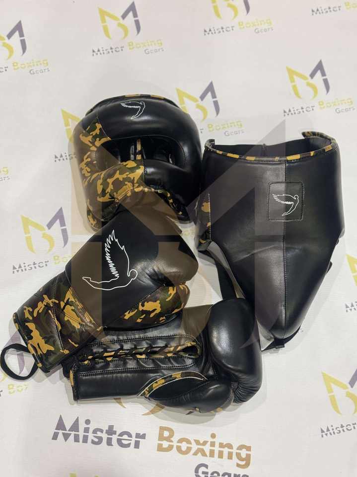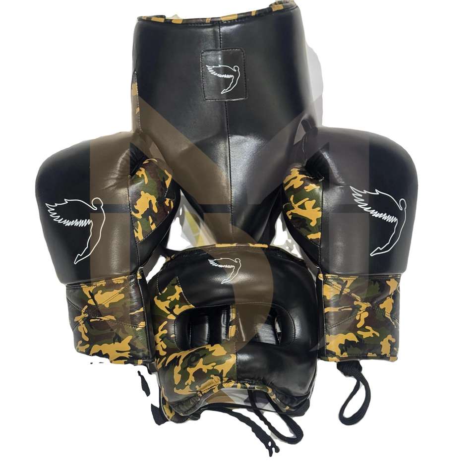 ชุดฝึกซ้อมมวยแบบสั่งทำยอดนิยม พร้อมโลโก้หรือชื่อใดก็ได้ ผลิตจากโรงงานหนังแท้ ออกแบบตามสั่ง ชุดนวมชกมวยสีดำ