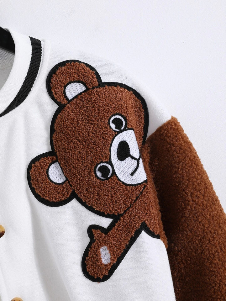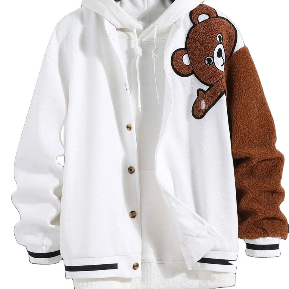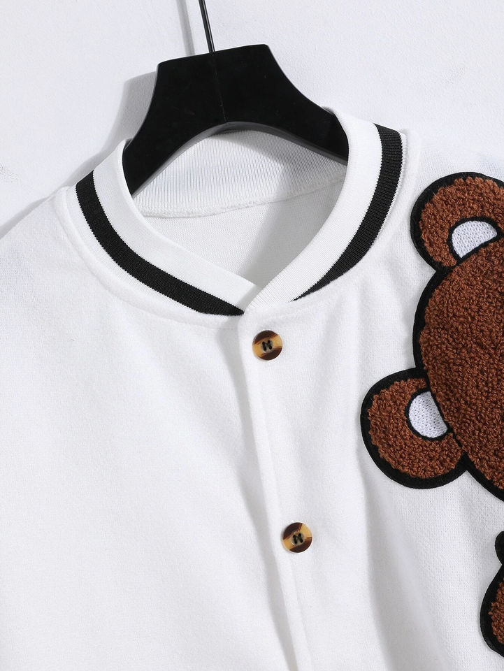 แจ็คเก็ตวาร์ซิตี้แบบมีฮู้ด คอตั้ง ปักลายหมี สำหรับผู้ชาย ขายดี ผลิตตามสั่ง น้ำหนักเบา ระบายอากาศได้ดี กันลม คุณภาพสูง ผ้าเชนิล