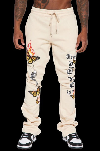 กางเกงขาบานสำหรับผู้ชายกางเกงเอวสูงฟอกสีดำตามสั่งใหม่