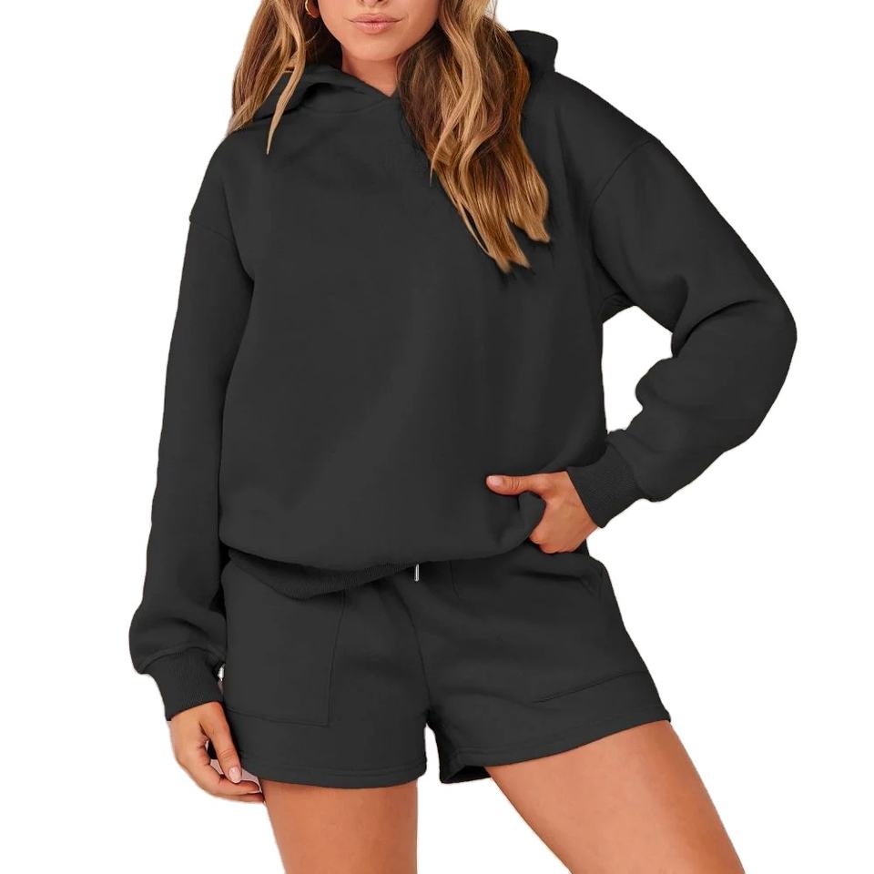 ชุดเซ็ตฮู้ดดี้สองชิ้นสำหรับผู้หญิง พิมพ์โลโก้ตามสั่ง ขายดี ผ้าฝ้าย ทรงจ็อกเกอร์ ฮู้ดดี้ครอปสีซีดแบบซันเฟด และกางเกงขาสั้น ที่นูรัก 2026