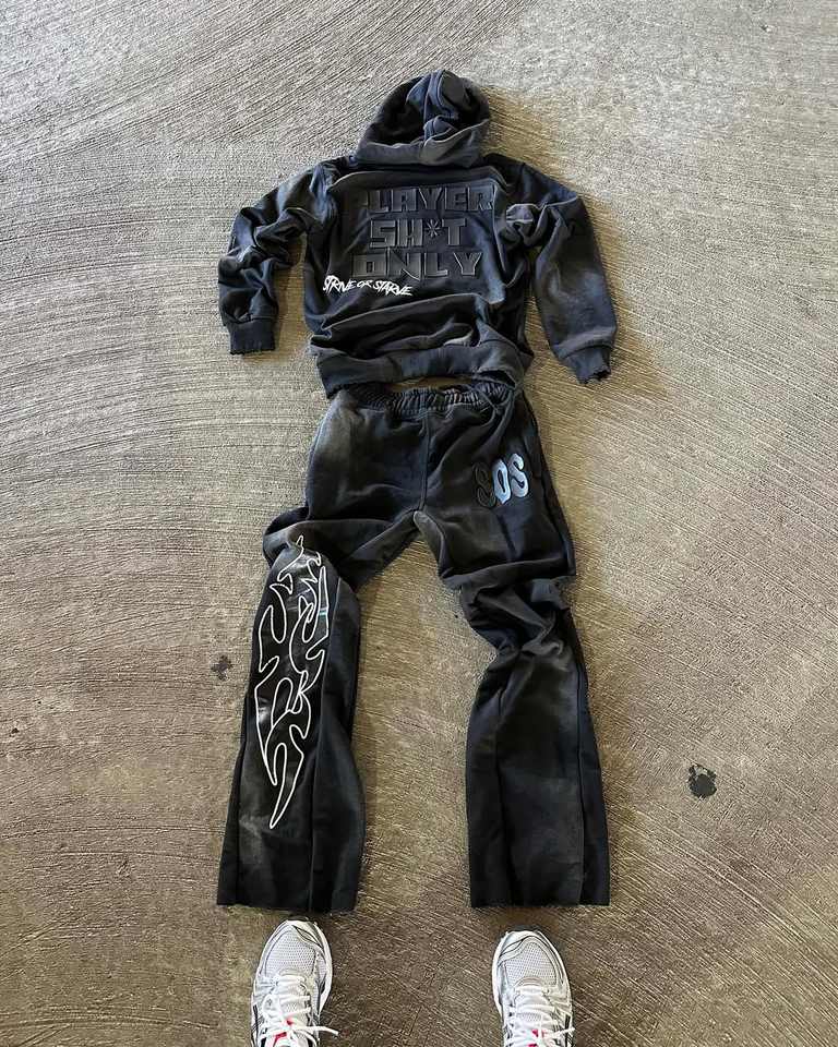ชุดวอร์มสไตล์สตรีทสำหรับผู้ชายผ้าฟลีซพิมพ์ลายและพิมพ์ DTG ทำจากซิลิโคนออกแบบได้ตามที่ต้องการ