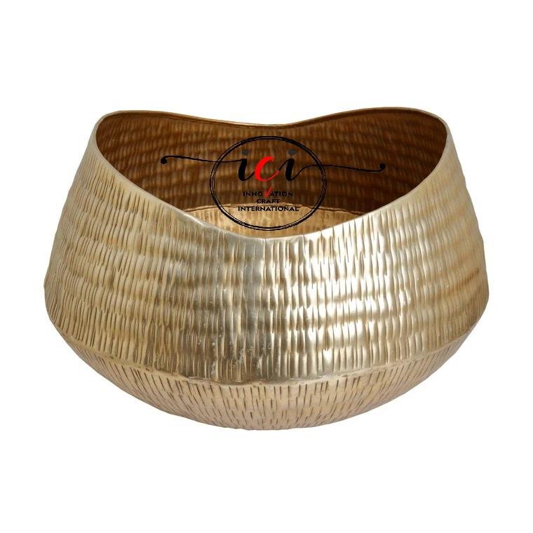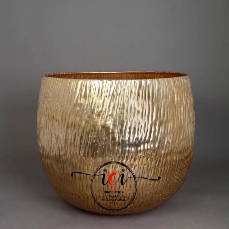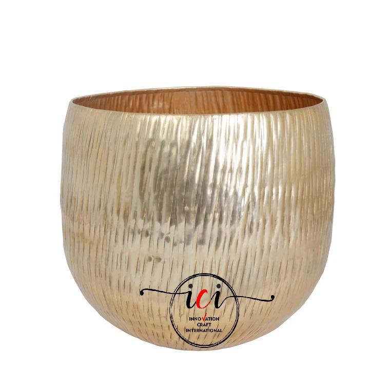 กระถางต้นไม้อลูมิเนียมเคลือบทองขนาดพิเศษพร้อมกระถางดอกไม้ผิวนูนสำหรับตกแต่งสวนในบ้าน