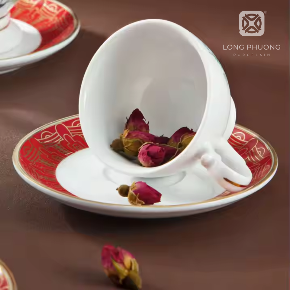 ชุดน้ำชาเซรามิกลาย Quan Ho ปรับแต่งได้กาน้ำชาสไตล์พื้นเมืองเวียดนามสำหรับใช้ในงานแต่งงานและร้านอาหาร