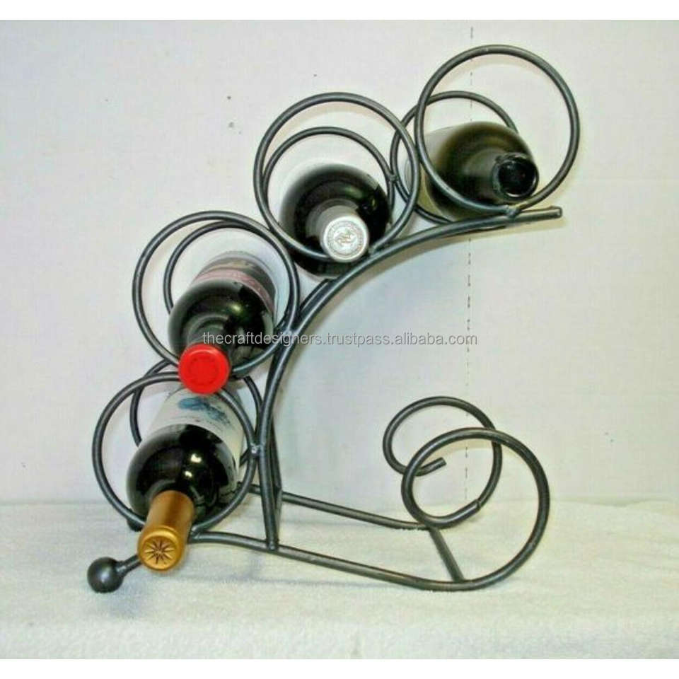 ชั้นวางโชว์3ขวดแบบปรับแต่งได้ชั้นวางไวน์ทำมืออินเดียทำจากลวดเหล็กหรูหราแชมเปญสำหรับงานปาร์ตี้ที่บ้าน