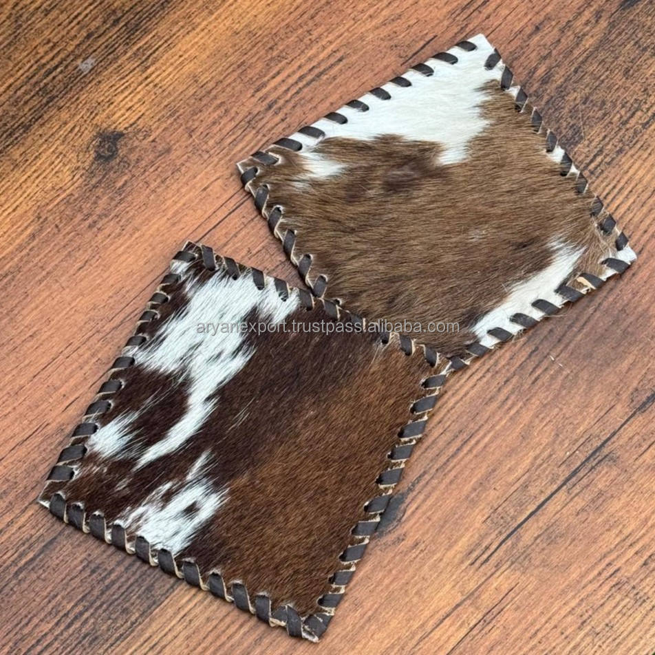 ชุดแผ่นรองแก้วหนังวัวแท้ขนสัตว์แบบกำหนดเอง ขายดี ทนความร้อน ใช้สำหรับวางแก้วน้ำ ชา กาแฟ เหมาะสำหรับบาร์และห้องครัว
