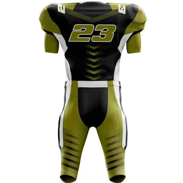 ชุดเครื่องแบบอเมริกันฟุตบอลพิมพ์ลายโลโก้แบบกำหนดเองผ้าฝ้าย100% โพลีเอสเตอร์ป้องกันแบคทีเรีย