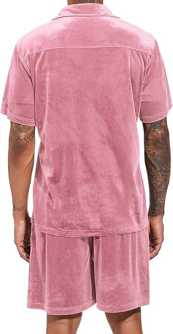 ชุดวอร์ม2ชิ้นสำหรับผู้ชายชุดวอร์มแต่งกระดุมชุดวอร์มสำหรับใส่กลางแจ้งชุดวอร์ม2ชิ้นสีชมพูสำหรับผู้ชาย