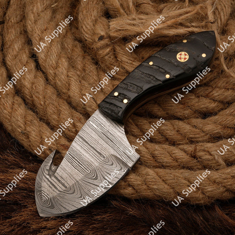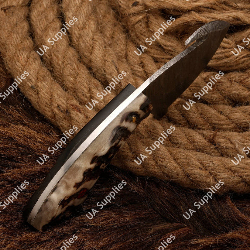 มีดสกินเนอร์อเนกประสงค์เหล็กดามัสกัสคมกริบ ด้ามจับตามหลักสรีรศาสตร์จากเขาแกะ งาน DIY ขายดี