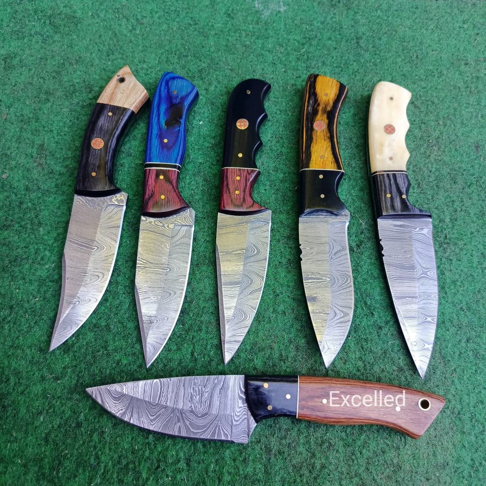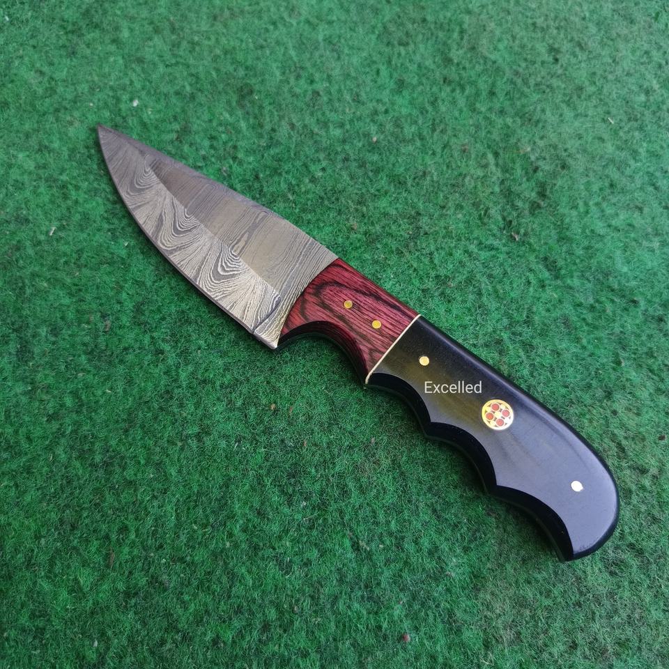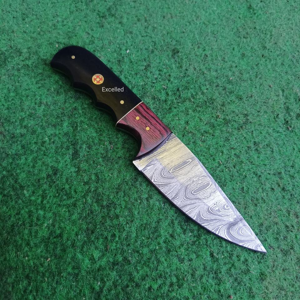 มีดดามัสกัสสกินเนอร์แบบใบมีดสำหรับล่าสัตว์และเอาชีวิตรอดมีดกลางแจ้งพร้อมด้ามจับทำจากเรซินและไม้