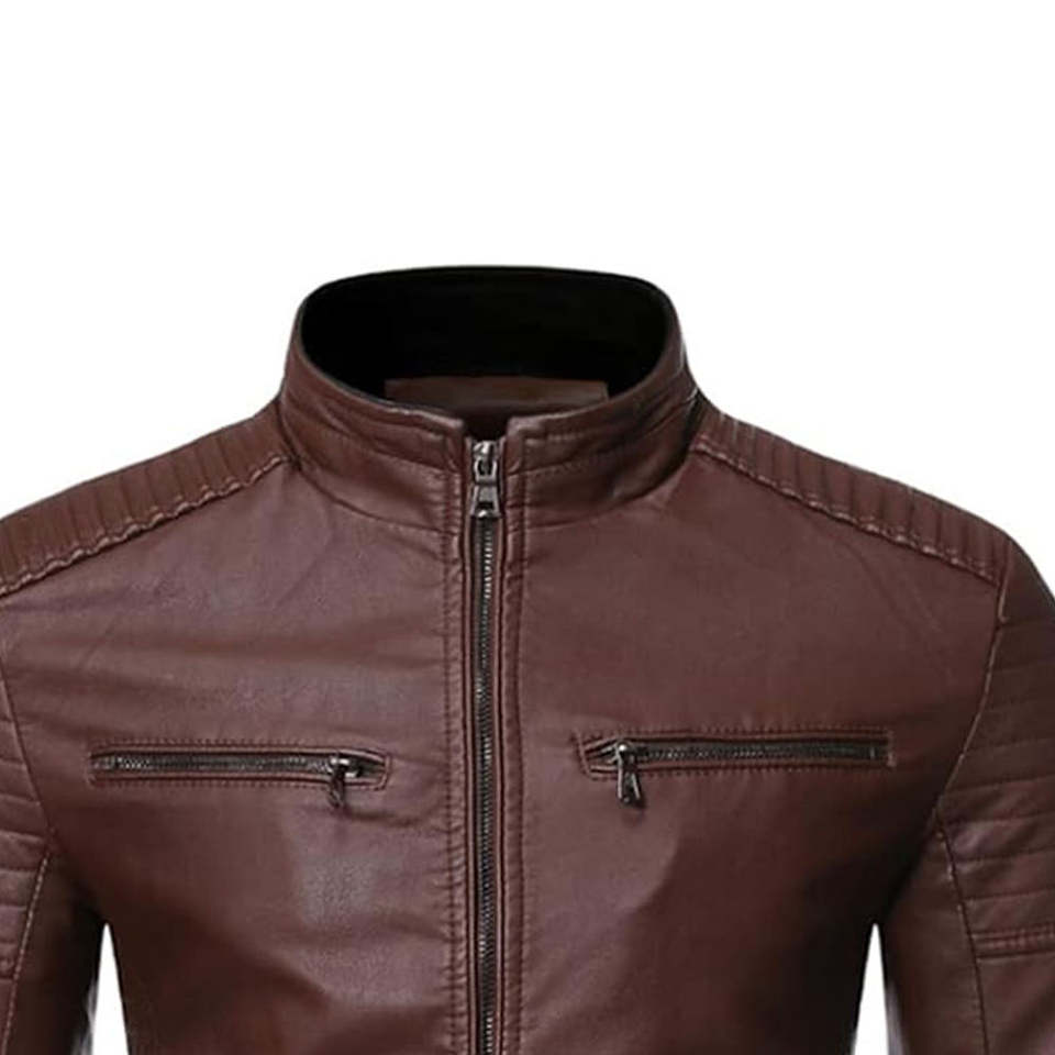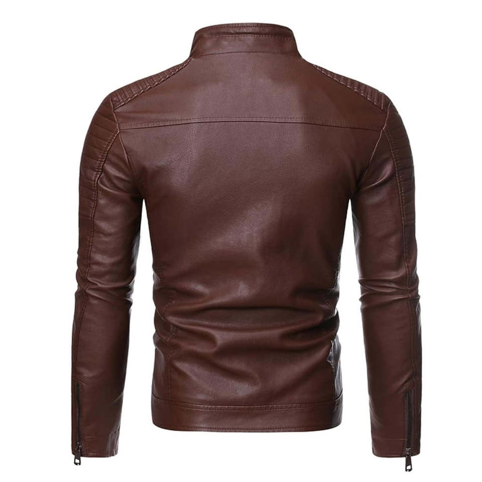 แจ็คเก็ตหนังสีน้ำตาลเข้มแฟชั่นใหม่ขายดี แจ็คเก็ตหนังผู้ชายแบบเรียบสำหรับกิจกรรมกลางแจ้ง รับสั่งทำโลโก้และดีไซน์