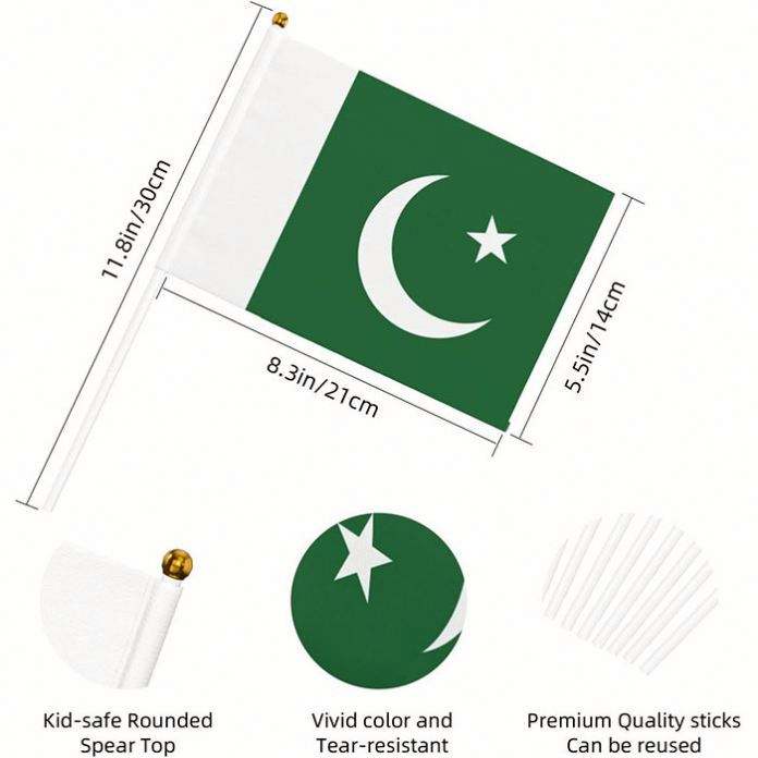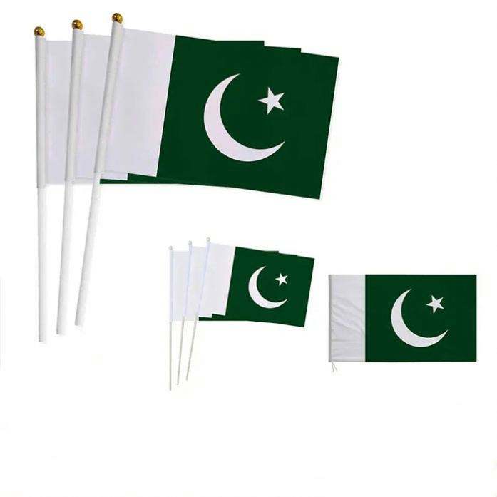 ธงชาติปากีสถานขนาดเล็ก 5.5x8.2 นิ้ว แบบถักมือ ขายดี พร้อมเสาพลาสติก