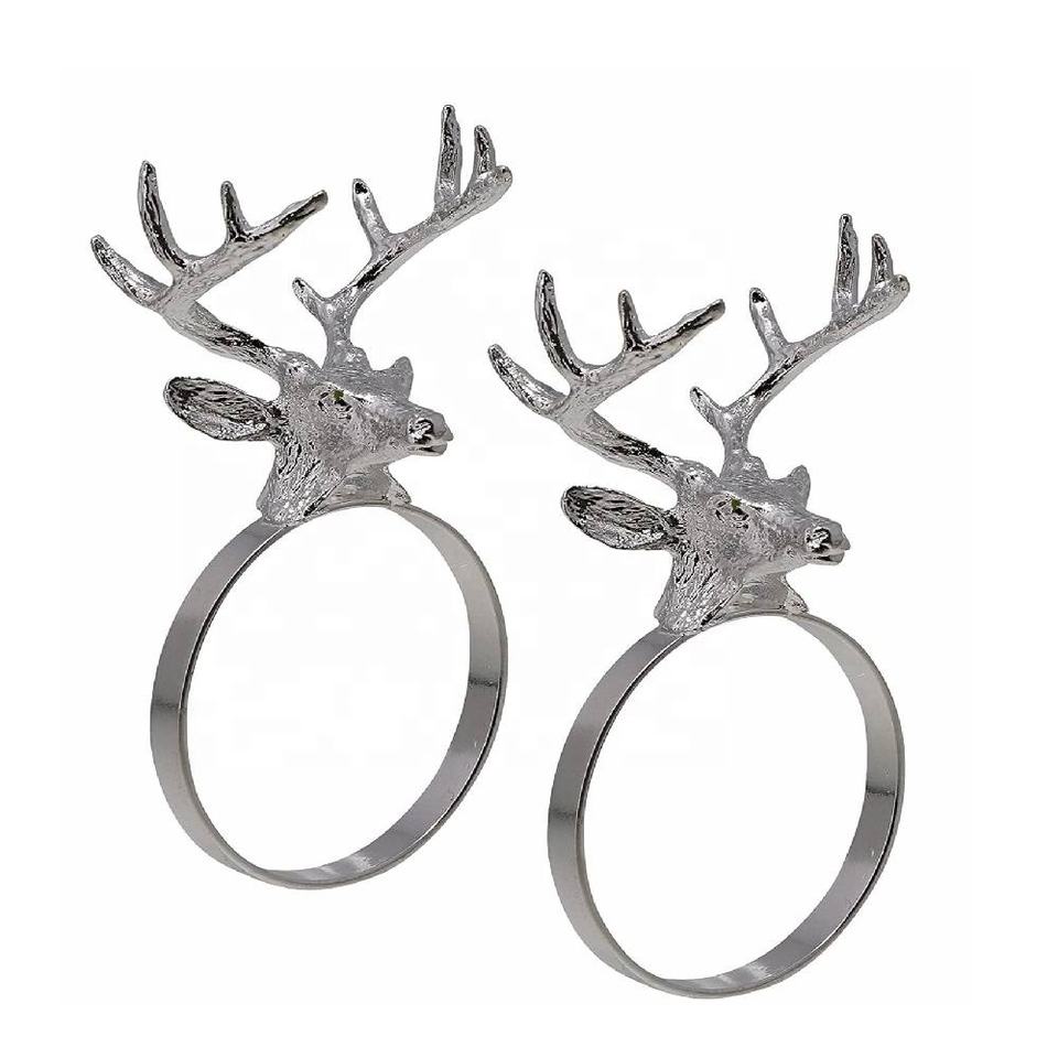 แหวนผ้าเช็ดปากหัวกวางที่ใส่ผ้าโลหะรูปทรงสี่เหลี่ยมใช้ในชีวิตประจำวันของตกแต่งงานคริสต์มาส/งานแต่งงาน