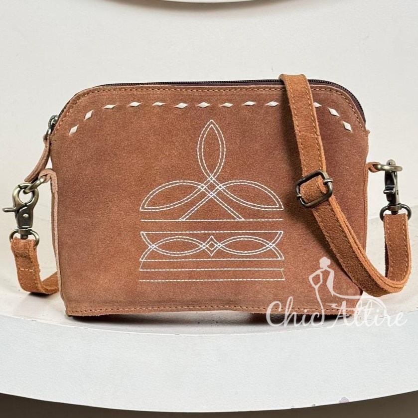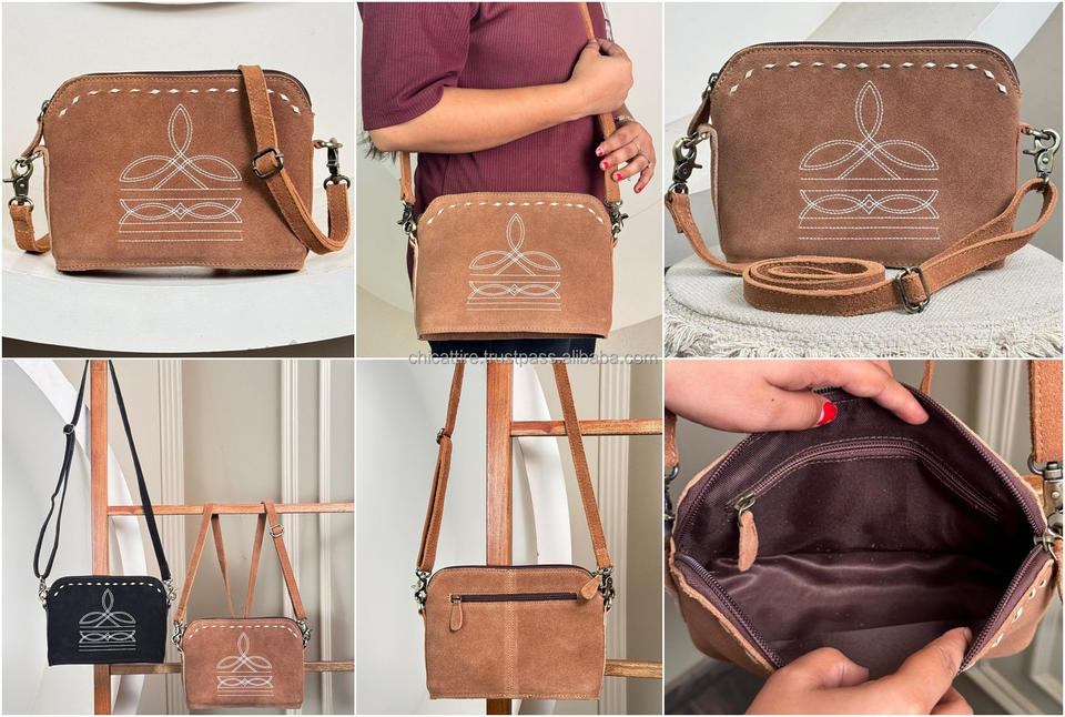 กระเป๋าสะพายข้างหนังกลับแบบเย็บตะเข็บ
