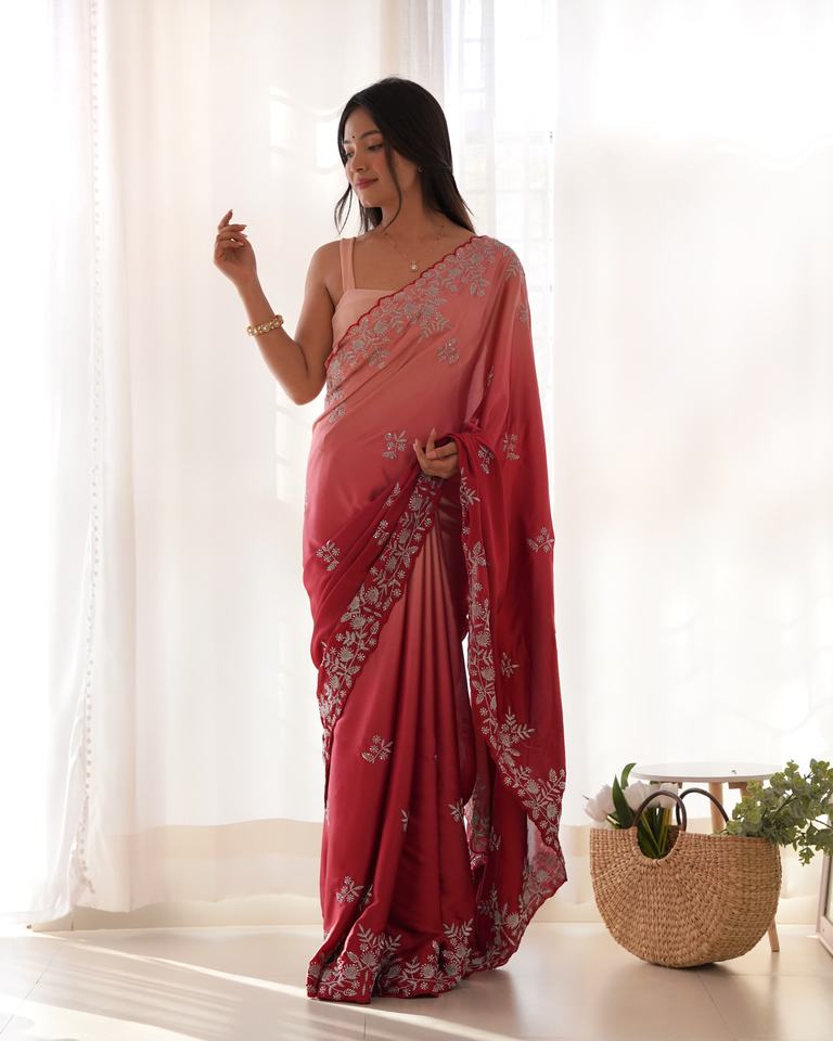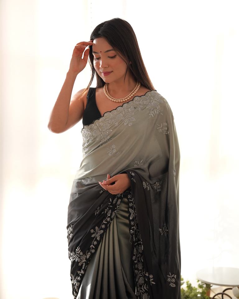 ประเภทผลิตภัณฑ์:ชุดส่าหรีผ้าซาตินปักลายสไตล์ญี่ปุ่น