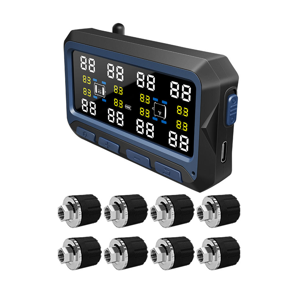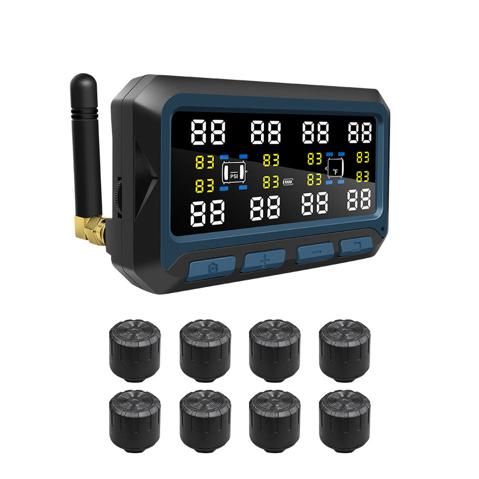 เซ็นเซอร์ TPMS ไร้สายป้องกันการโจรกรรมแบบดิจิตอล ขายดี พร้อมจอ LCD แสดงผล รองรับยาง 8 เส้น เซ็นเซอร์ในตัว ความถี่ 433.92MHz สำหรับรถยนต์/รถบรรทุก/รถบ้าน/รถพ่วง